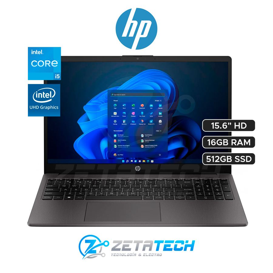 HP 250R G10 / INTEL CORE I5-120U / 16GB DDR4 / 512GB SSD / GRAFICOS INTEL UHD GRAPHICS / 15.6″ HD (1366 x 768)